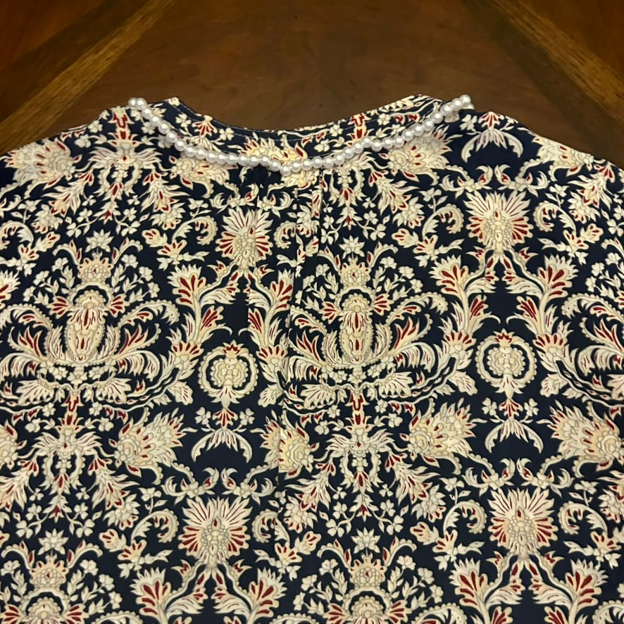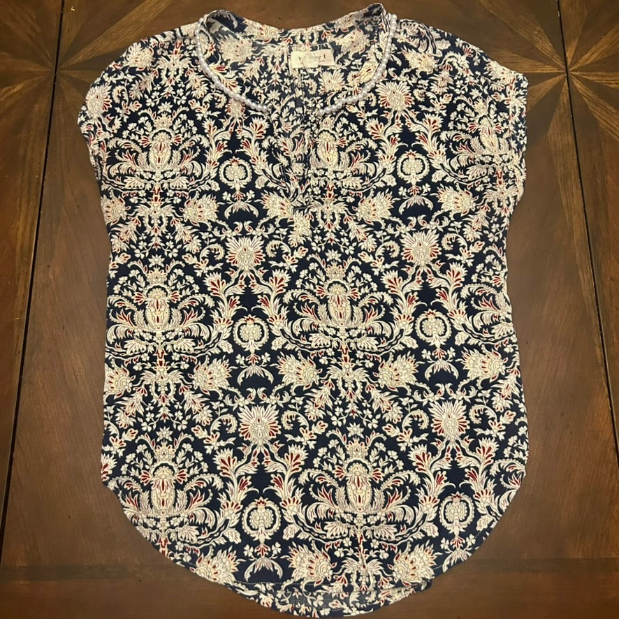 VELVET by Graham and Spencer Floral Blouse with Pearl Neckline